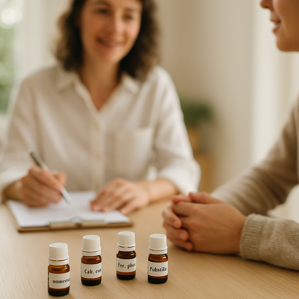 Wir führen ein ausführliches Gespräch, um deine Situation zu verstehen, und wählen dann das für dich passende homöopathische Mittel aus.